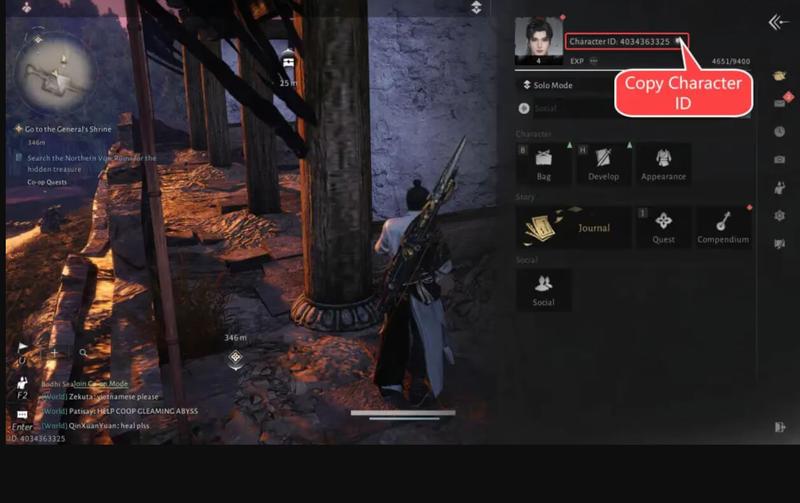 2. Enter your Where Winds Meet Character ID.